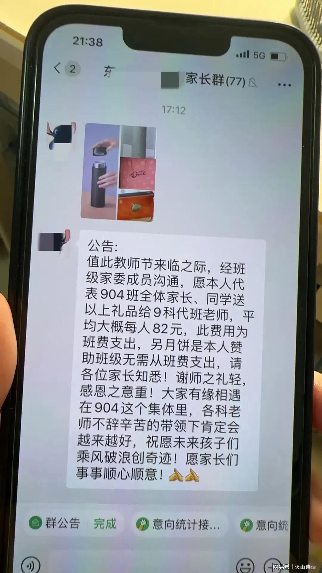- 说到教师节送礼,还有更夸张的。前几天就有网友发帖感慨,下周三就是教师节了,家委会又开始作妖了,家委会里的那个显眼包又在群里提议给老师送礼,这种拉仇恨的事也就他们干得出。