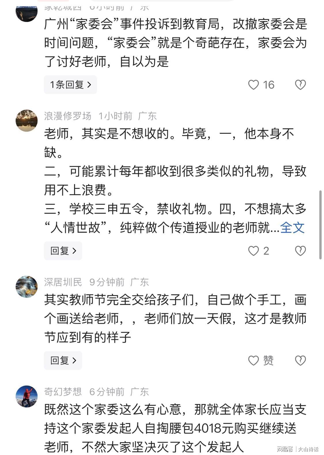 有网友建议,既然这个家委这么有心意,那就全体家长应当支持这个家委发起人自掏腰包4018元购买继续送老师。