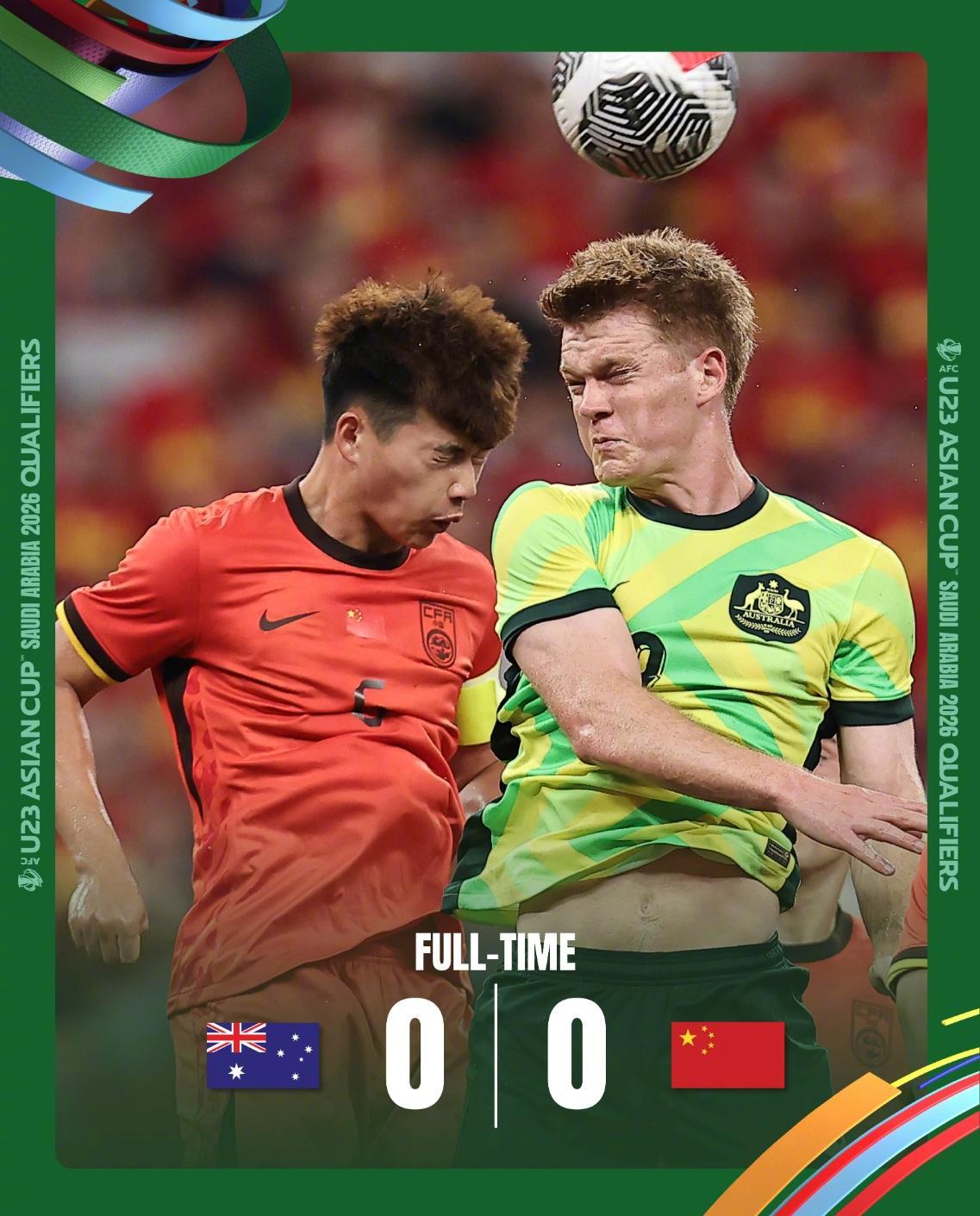 中国队上半场守的非常成功,也只给澳大利亚4次射门的机会并且0次射正。比赛下半场场上局势也没有太大改变,场地的问题仍然存在,给双方都造成了比较大的麻烦,王钰栋的反击突破威力也打了折扣。比赛尾声双方发生了一点小摩擦,不过好在只是小问题,没有影响双方的情绪和比赛。全场比赛最有威胁的一次射门来自澳大利亚队,在常规时间即将结束的时候,澳大利亚队一脚近距离凌空抽射被李昊神勇化解。