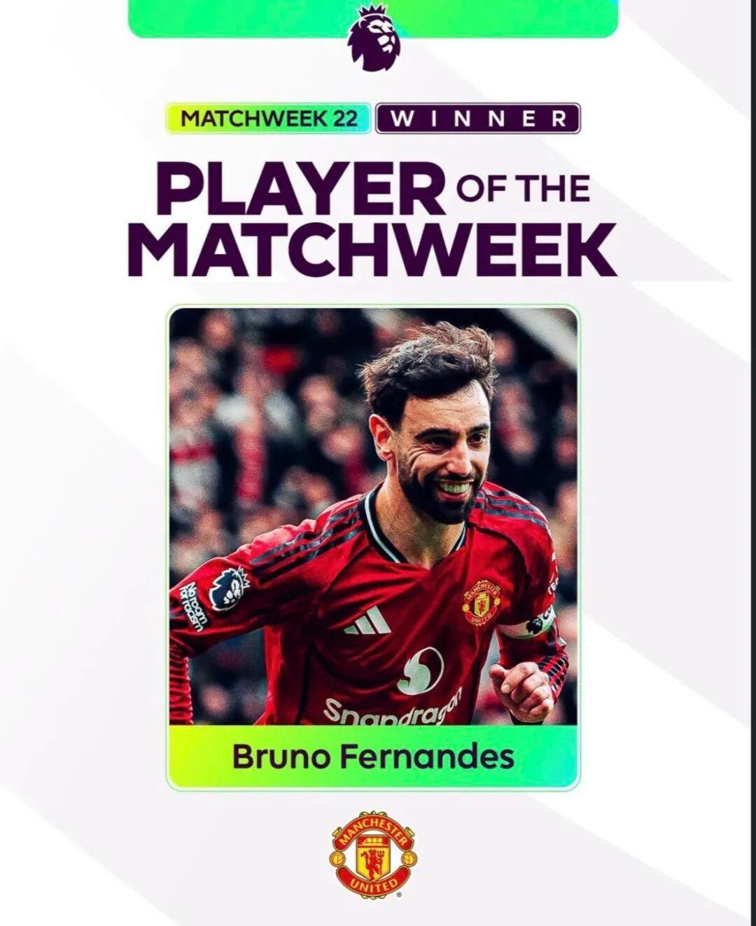 B费当选英超周最佳球员!