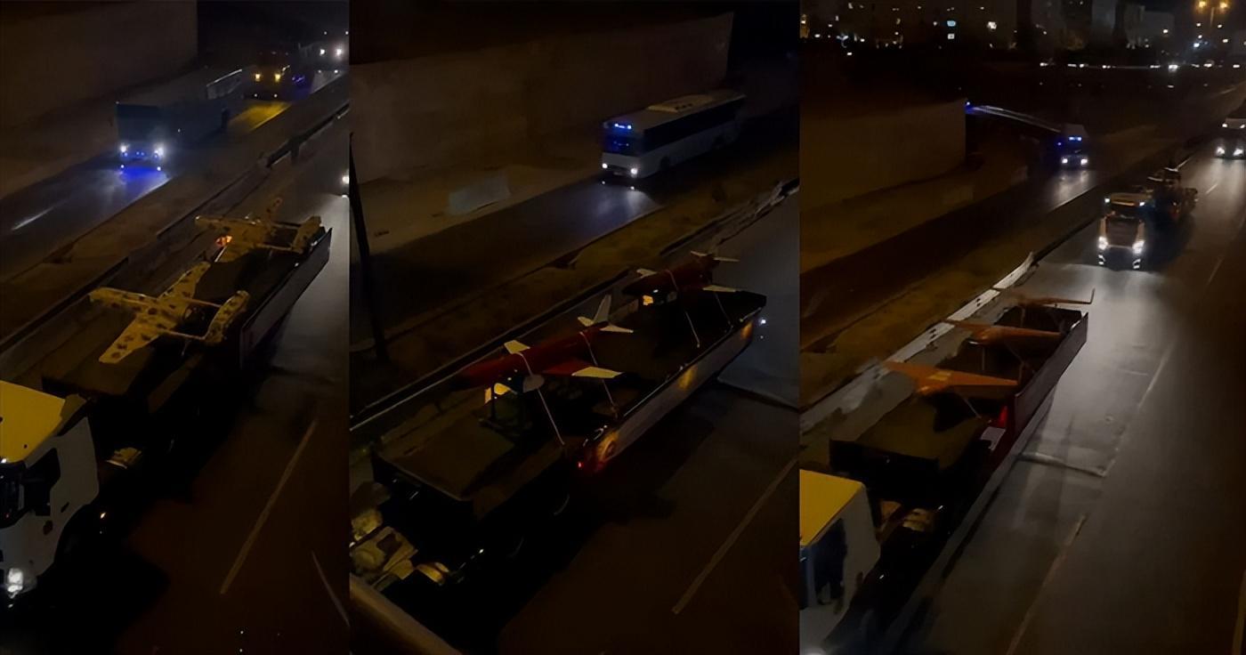 载有作战无人机的卡车在夜间穿过伊朗城市